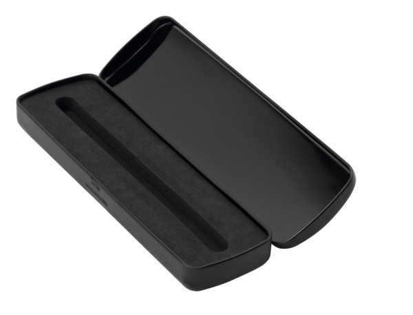 Metal hinged case lacquered in black or white for one or two writing instruments. more