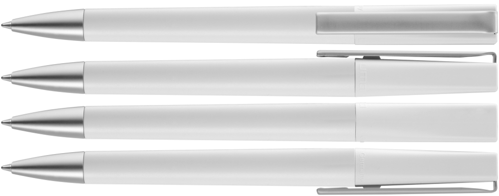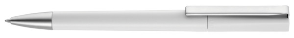 Twist ballpoint pen with opaque matt housing, heavy metal tip and metal clip matt chrome plated.