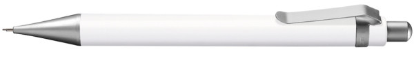 Mechanical pencil (0.7mm) with transparent frosted or opaque housing. Metal push-button, metal clip and metal tip matt chromed.