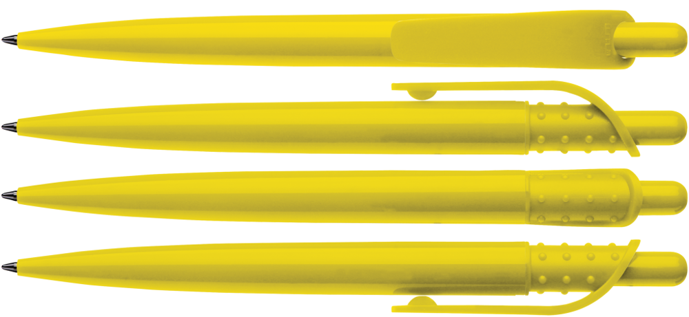 Retractable ballpoint pen with opaque glossy housing and large clip on nubbed clip holder. more
