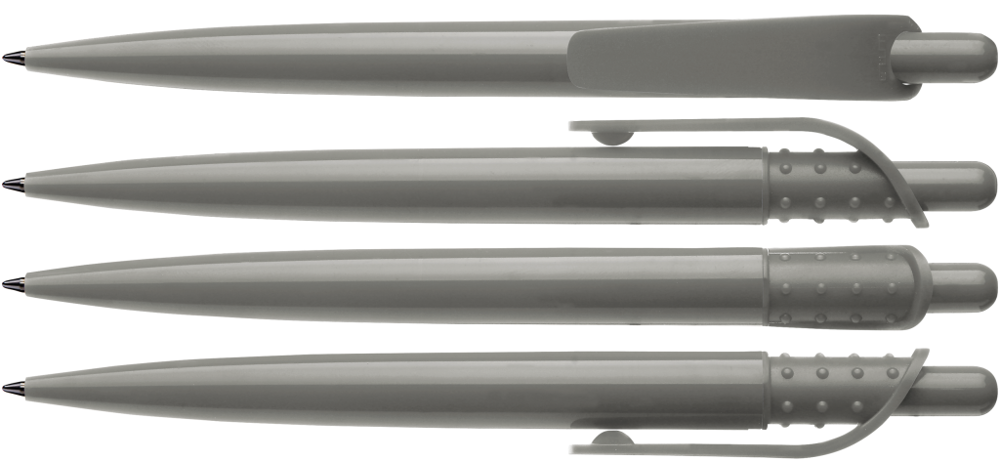 Retractable ballpoint pen with opaque glossy housing and large clip on nubbed clip holder. more