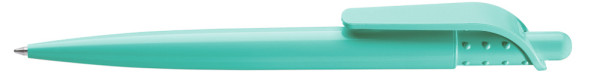 Retractable ballpoint pen with opaque glossy housing and large clip on nubbed clip holder. more