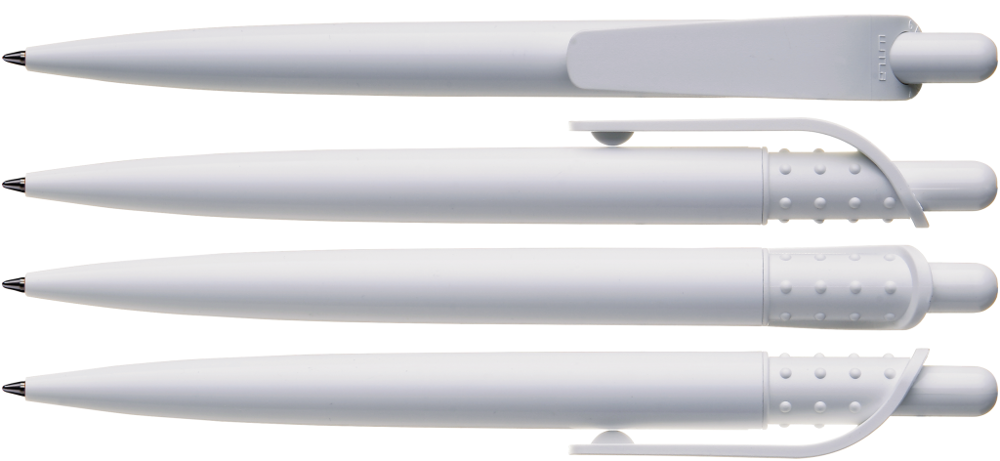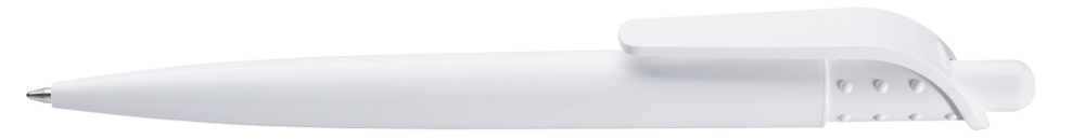 Retractable ballpoint pen with opaque glossy housing and large clip on nubbed clip holder. more