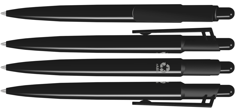 Retractable ballpoint pen with opaque glossy body and large clip made from 100% recycled plastic. The model is labelled with the recycling mark. Thanks to the ClimatePartner-certified production, the uma VITAN RECY makes an additional sustainable contribution to the protection of the environment. Due to the special nature of the material (ABS recycled plastic) production-related variations are possible.