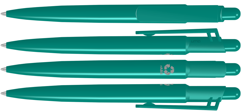 Retractable ballpoint pen with opaque glossy body and large clip made from 100% recycled plastic. The model is labelled with the recycling mark. Thanks to the ClimatePartner-certified production, the uma VITAN RECY makes an additional sustainable contribution to the protection of the environment. Due to the special nature of the material (ABS recycled plastic) production-related variations are possible.