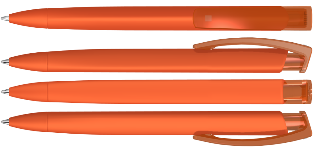 Retractable ballpoint pen with opaque matt triangular housing and transparent glossy clip made... more