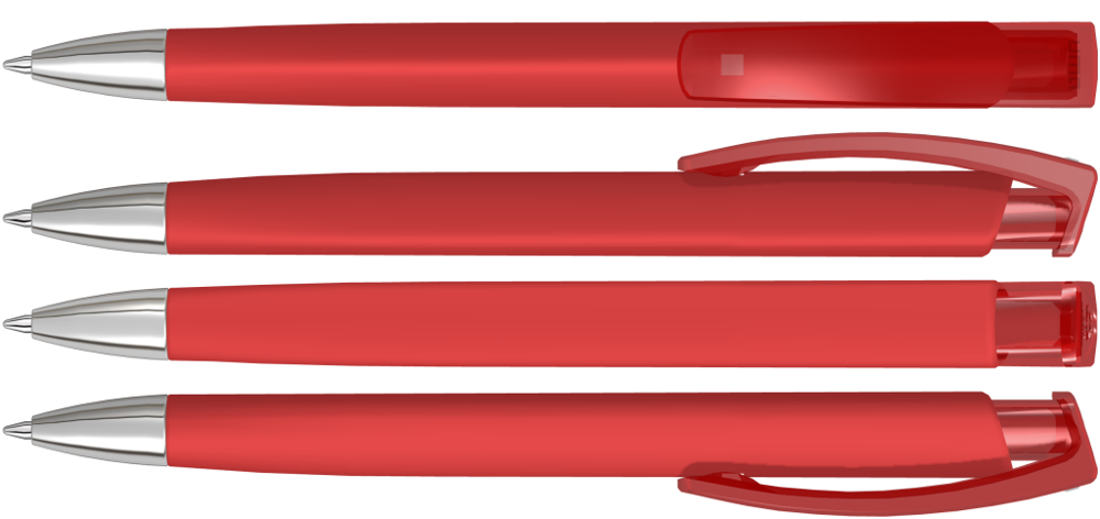 Retractable ballpoint pen with opaque matt triangular housing, transparent glossy clip made from... more