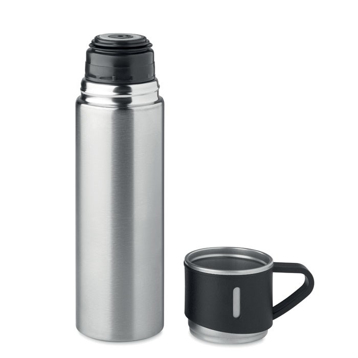 Double wall stainless steel vacuum insulated flask with leak-free cup lid. Capacity: flask 420 ml, cup 150 ml.