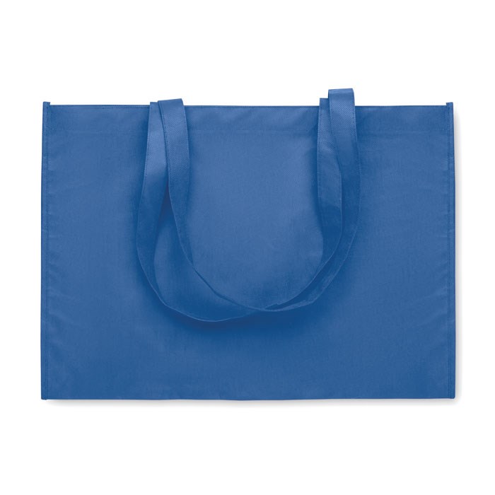 Shopping or beach bag in RPET non-woven with gussets and long handles. 80 gr/m².