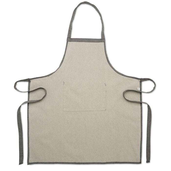 Adjustable kitchen apron with 1 front pocket in 220 gr/m² recycled cotton. 80% recycled cotton, 20% regular cotton.