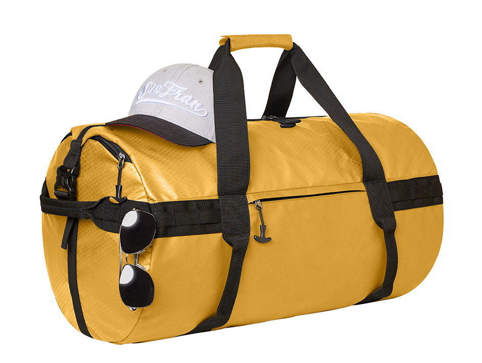 Comfortable sports travel bag with backpack function; spacious main compartment with 2-way zip and side buckles; zipped side pocket; zipped front pocket; all-round functional strap band; various handles; carry handles and concealed, padded and length-adjustable shoulder straps