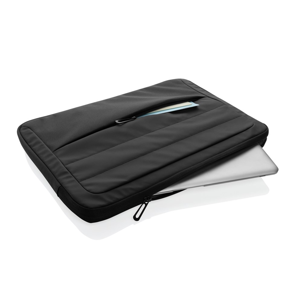 A stylish way to protect your laptop – a roomy front pocket and a sleek design that holds up to a 15.6 inch laptop. Made with 100% recycled polyester. With AWARE™ tracer that validates the genuine use of recycled materials. 2% of proceeds of each Aware™ product sold will be donated to Water.org. PVC free.