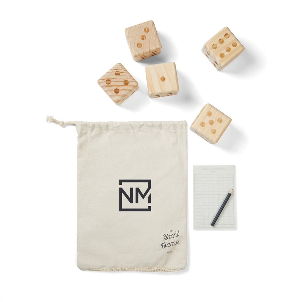 The outdoor yacht game is the classic dice game that is perfect for lovely outdoor days. The goal of the game is to get the highest possible score by rolling and combining the dice in different ways. The game is easy to learn and can be played by all ages. 5 dice, measuring 7x7x7cm, a notepad and pencil is included. Packed in a cotton bag with a mesh back. Manual included. All wooden parts are crafted from high-quality FSC®-certified pinewood, ensuring wood from responsibly managed forests.