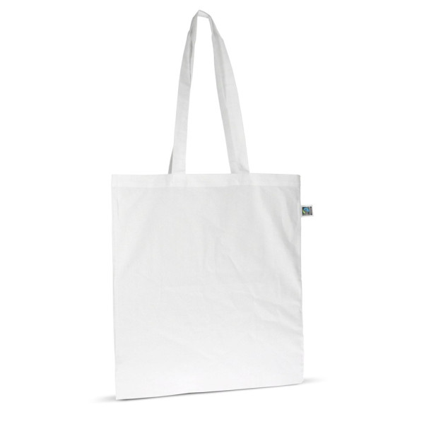 Elevate your style with this cotton bag, sized at 38 × 42 cm. The cotton in this bag is Fairtrade certified, traded, audited and sourced from Fairtrade producers. Fairtrade supports fairer trading conditions and opportunities for cotton producers to invest in their businesses and communities. Visit info.fairtrade.net/sourcing.