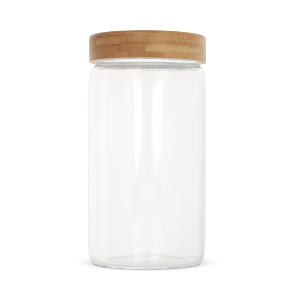 Introducing our elegant 1200ml glass canister with a stylish bamboo lid. Store your essentials in class. Perfect for kitchen and home organization.