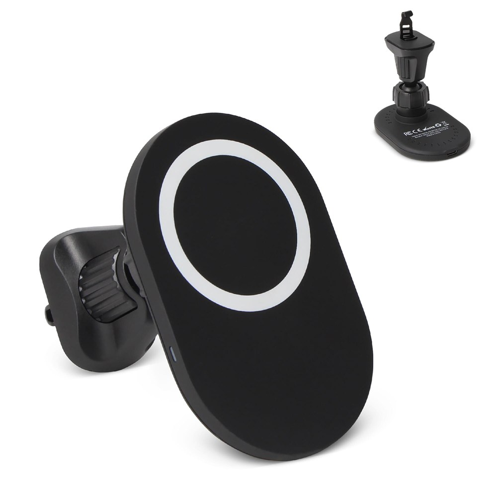 This 15W magnetic wireless car charger is fully compatible with Apple’s MagSafe ecosystem, but also comes with a magnetic pad for other phones. Simply snap it on to start charging – the perfect charging solution for your road trips. Of course it's made with recycled materials (R-ABS) and has smart protection: over-current, short-circuit, FOD protection.