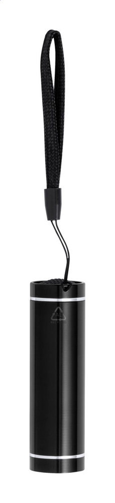 1 LED recycled aluminium flashlight with carry strap. Operates with 3 AAA batteries, without batteries.