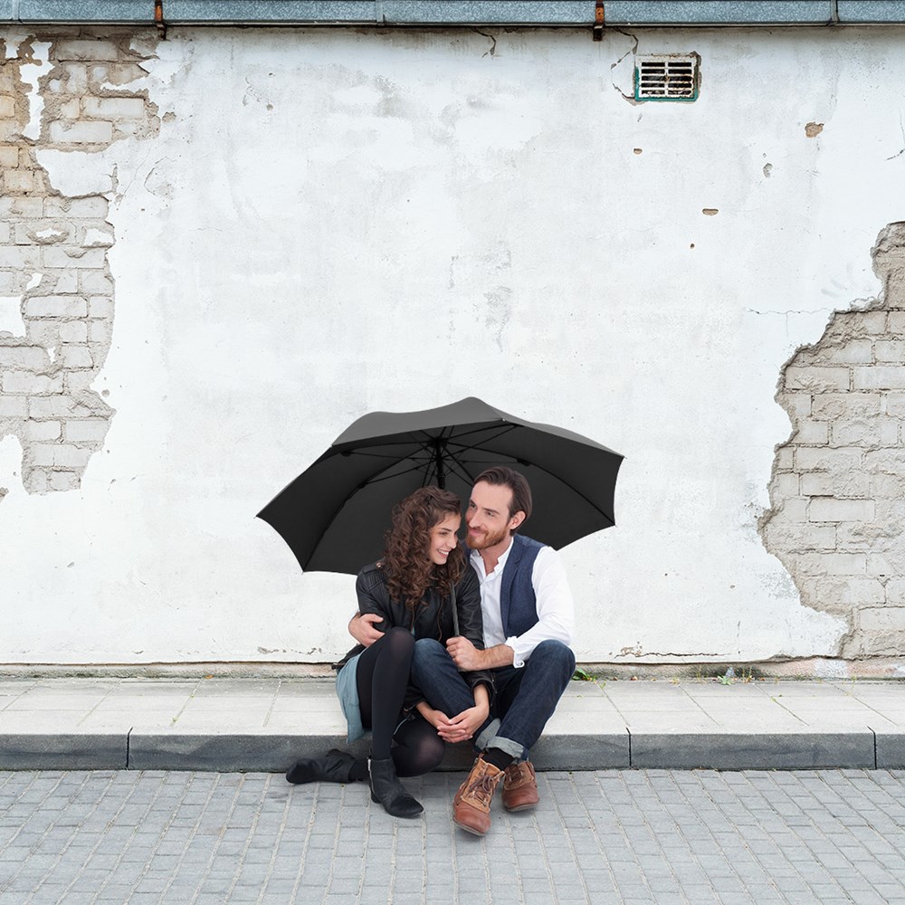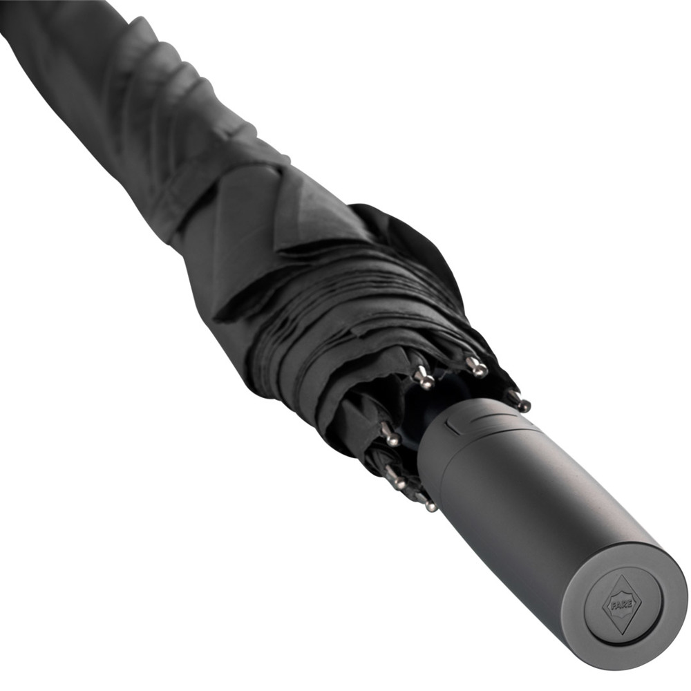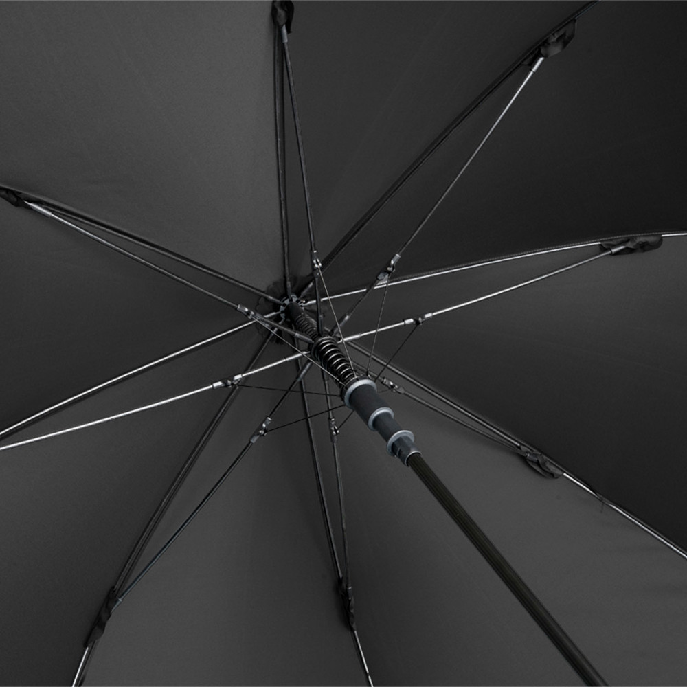 Attractively priced automatic golf umbrella with Windproof PLUS system Convenient automatic function for quick opening, high-quality Windproof PLUS system for maximum frame flexibility in stormy conditions, flexible fibreglass ribs, higher corrosion protection thanks to black galvanisation of the steel shaft, Soft-Feel handle with integrated pushbutton and promotional labelling option.