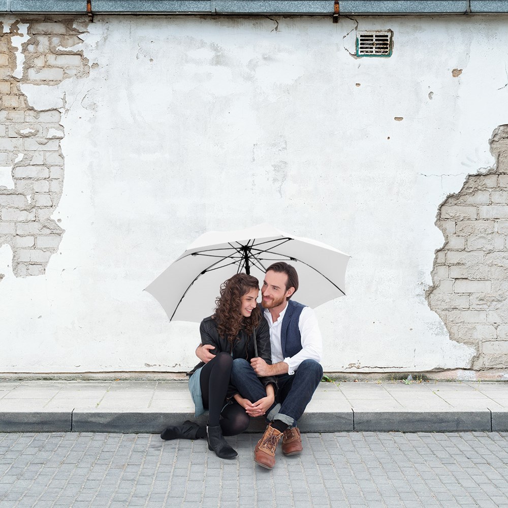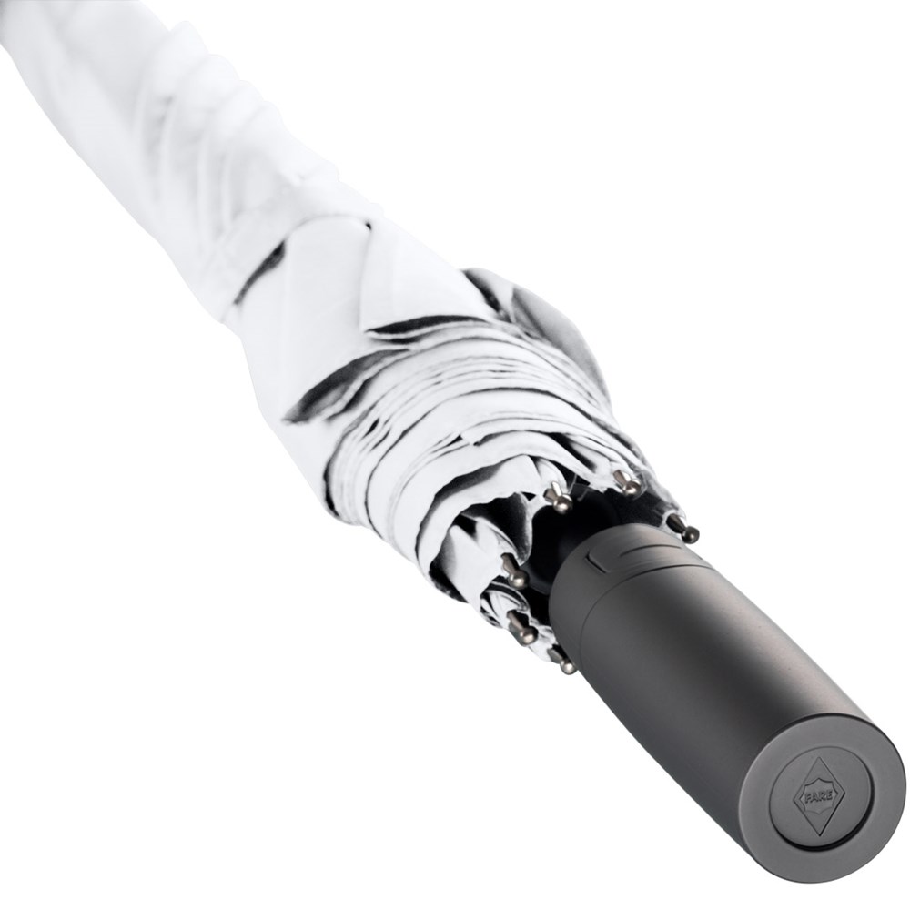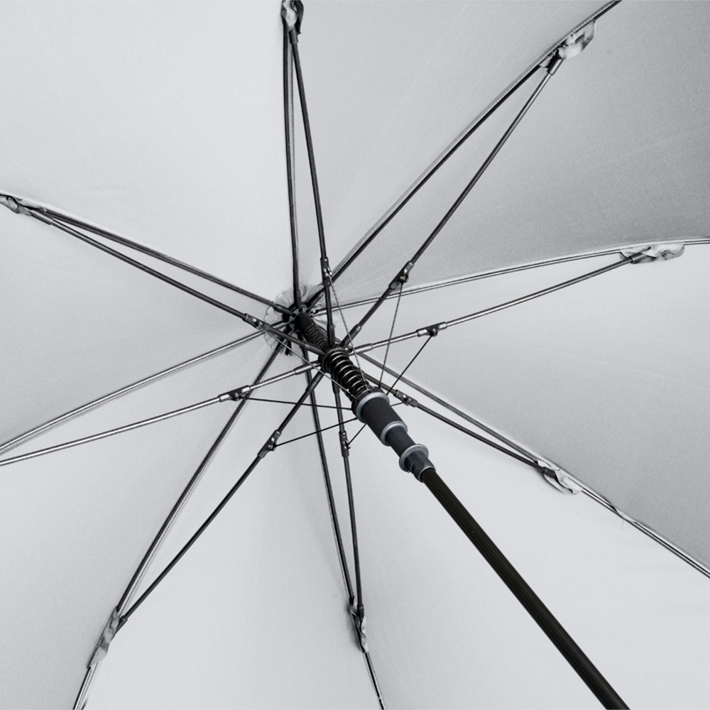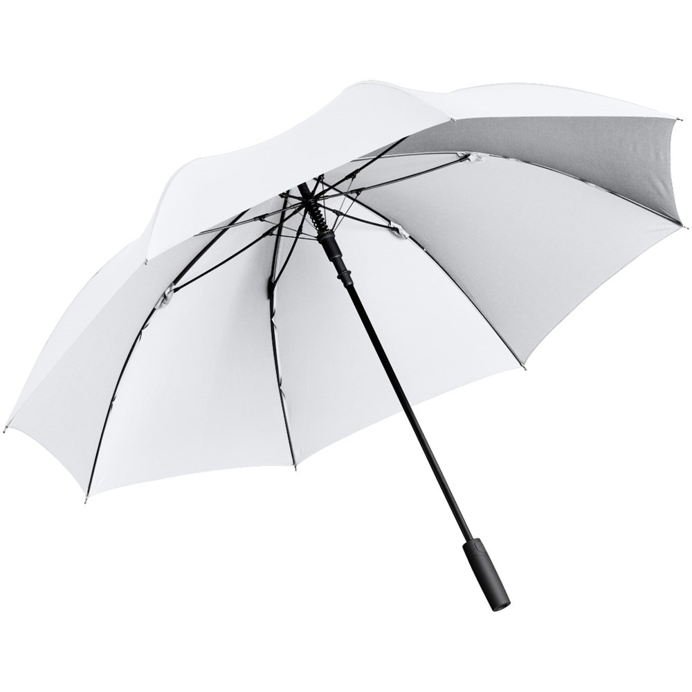 Attractively priced automatic golf umbrella with Windproof PLUS system Convenient automatic function for quick opening, high-quality Windproof PLUS system for maximum frame flexibility in stormy conditions, flexible fibreglass ribs, higher corrosion protection thanks to black galvanisation of the steel shaft, Soft-Feel handle with integrated pushbutton and promotional labelling option.
