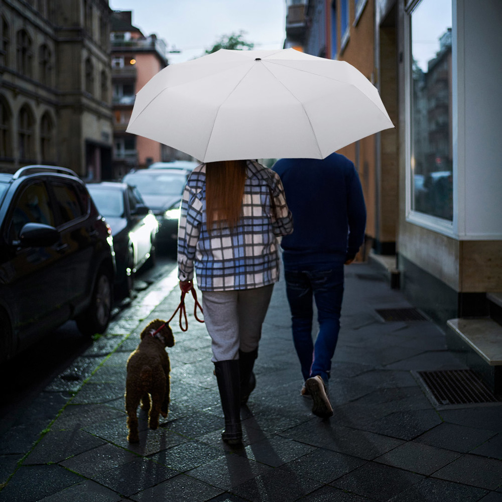 Attractively priced automatic open/close pocket umbrella in oversize with Windproof PLUS system Convenient automatic open/close function for quick opening and closing, high-quality Windproof PLUS system for maximum frame flexibility in stormy conditions, comfortable Soft-Feel handle with integrated push-button, elastic loop and promotional labelling option