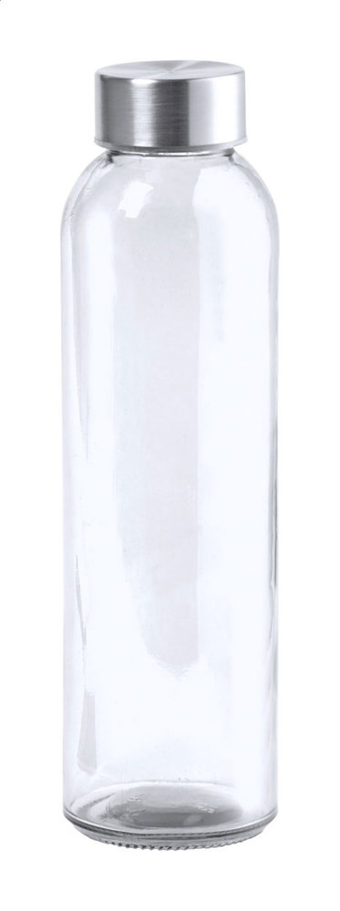 Transparent glass bottle with stainless steel cap, 500 ml. In gift box. Not suitable for carbonated drinks.