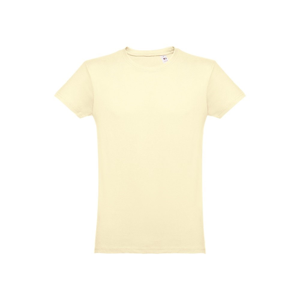 Tubular t-shirt for men with a regular cut in jersey 100% cotton (150 g/m²) with carded cotton yarn (colour 183: 90% cotton/10% viscose). Features a 1x1 rib collar with jersey reinforcement ribbon and double seam on sleeves and hemline. Sizes: XS, S, M, L, XL, XXL