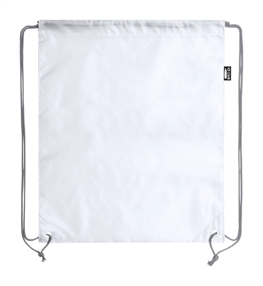 RPET polyester drawstring bag with reinforced corners. With distinctive RPET label.