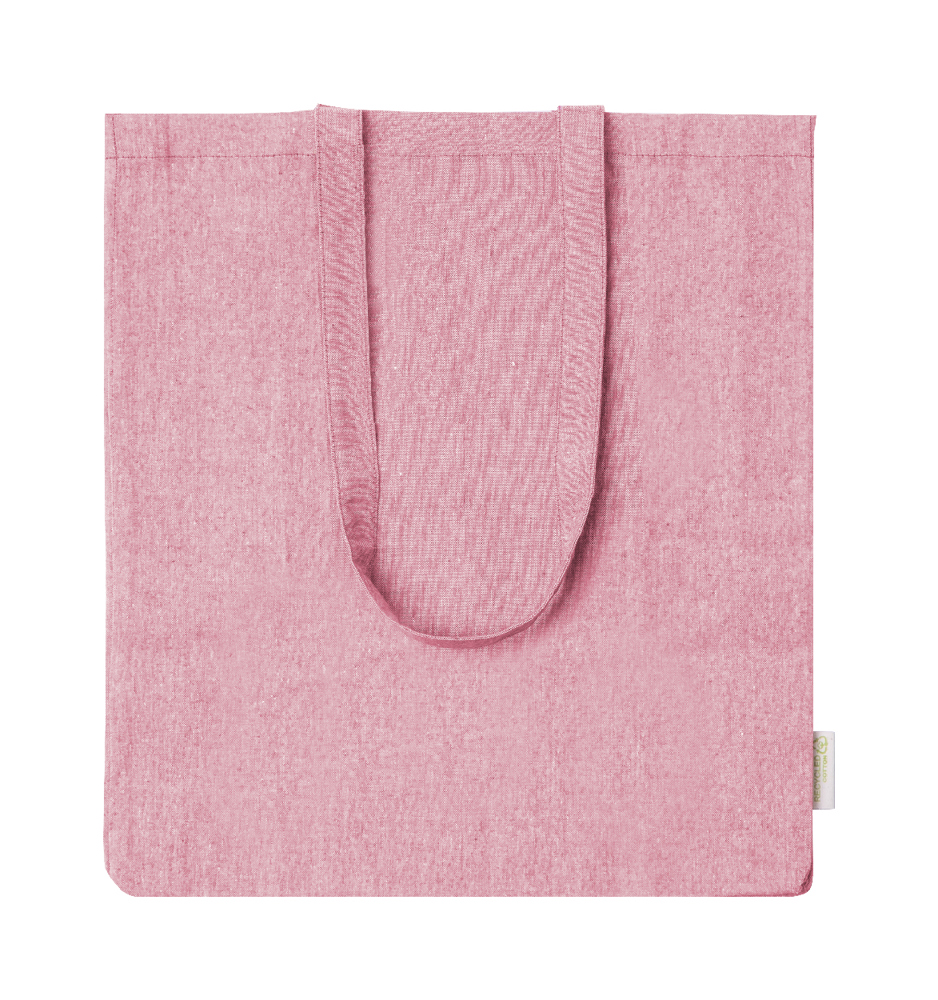 Recycled cotton shopping bag with gusset, long handles and distinctive recycled cotton label. 100% recycled cotton, 140 g/m².