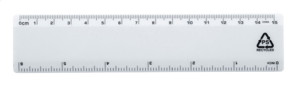 Recycled PS plastic ruler, 15 cm.