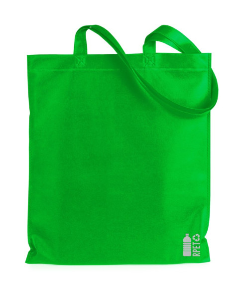 RPET non-woven shopping bag with long handles, 70 g/m². With distinctive RPET sign.