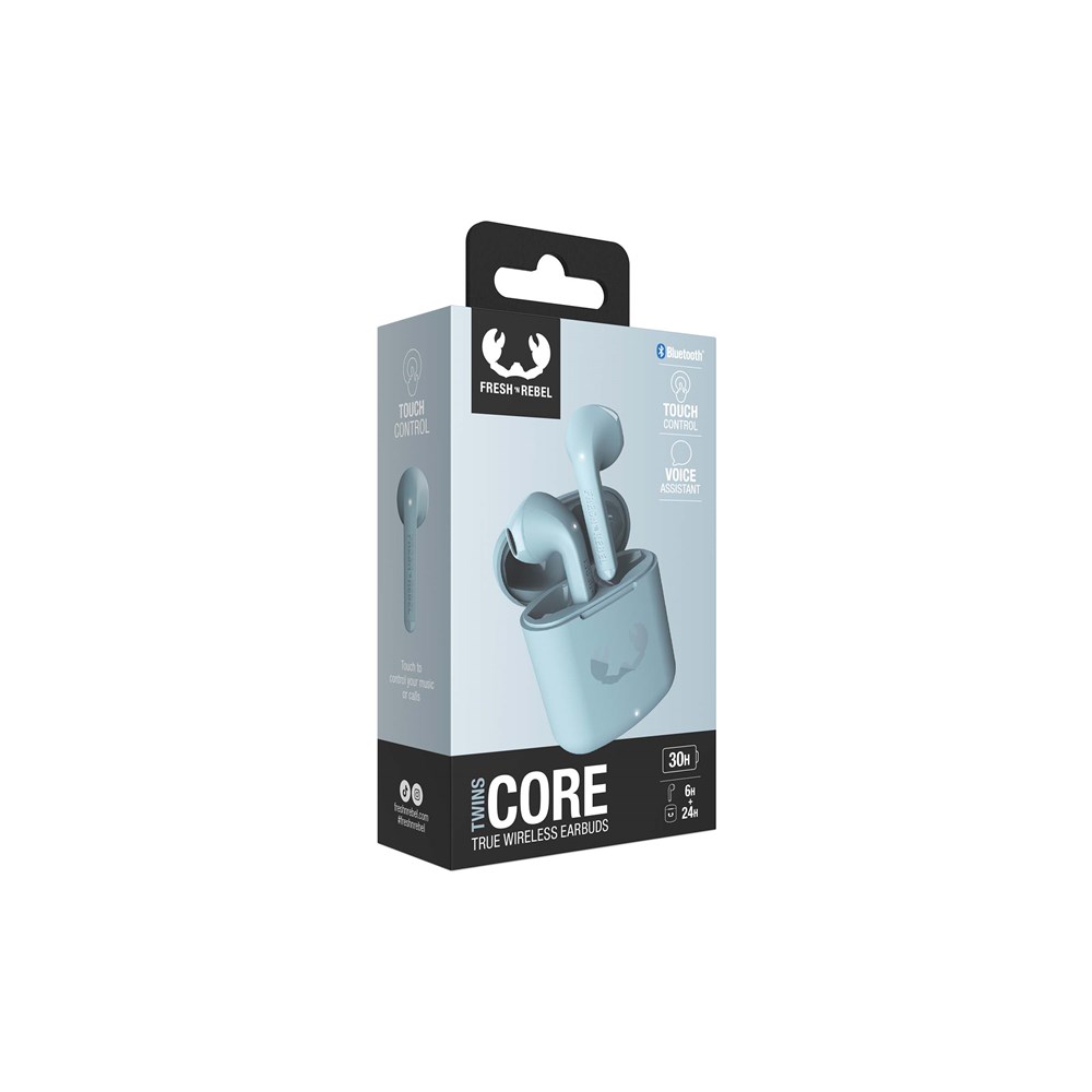 Experience the ultimate convenience with the Twins Core earbuds from Fresh 'n Rebel. Touch control allows easy management of music and calls, while the dual master feature offers flexibility. Match your earbuds with any outfit and enjoy 30 hours of wire-free music. Fully charged in just 1.5 hours, each charge provides 6 hours of use. Plus, access your voice assistant effortlessly. The Fresh 'n Rebel Twins Core can be personalised with a print in full colour and a sleeve.