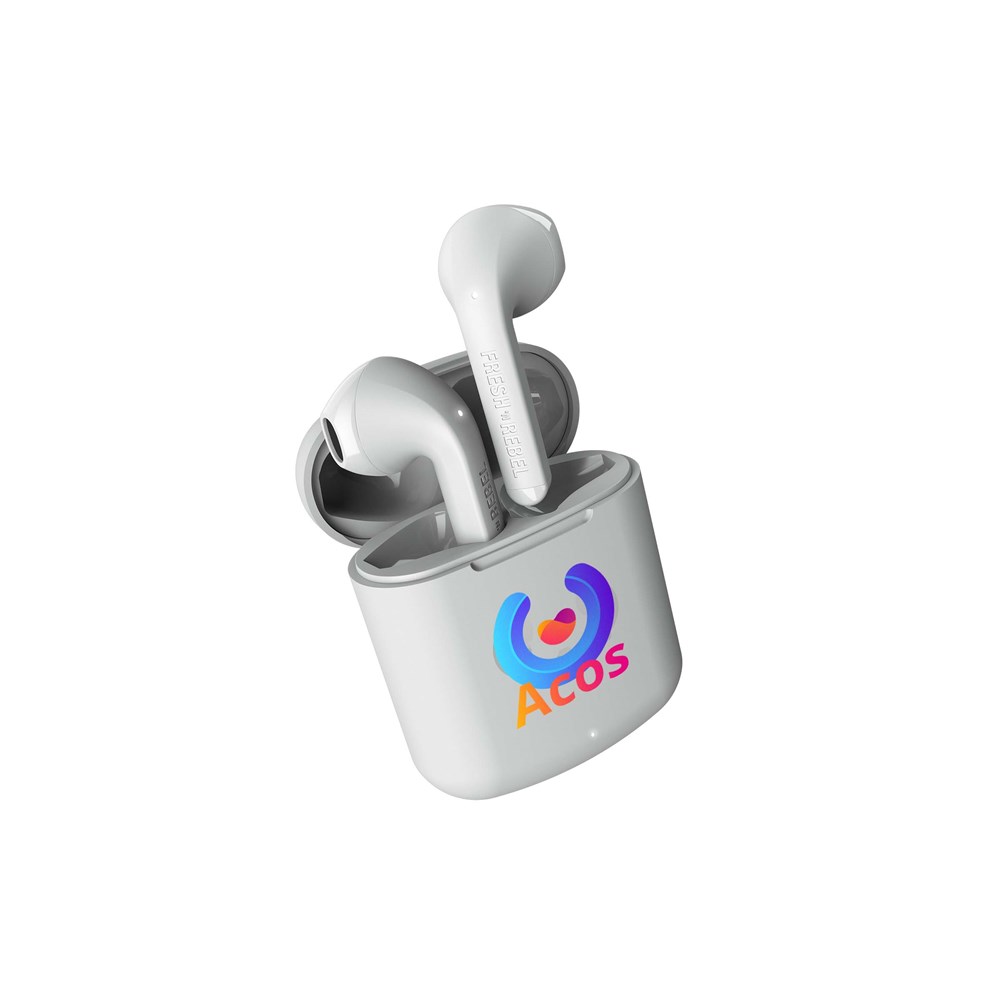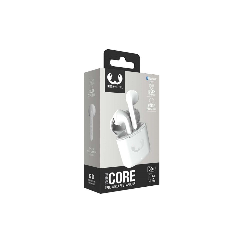 Experience the ultimate convenience with the Twins Core earbuds from Fresh 'n Rebel. Touch control allows easy management of music and calls, while the dual master feature offers flexibility. Match your earbuds with any outfit and enjoy 30 hours of wire-free music. Fully charged in just 1.5 hours, each charge provides 6 hours of use. Plus, access your voice assistant effortlessly. The Fresh 'n Rebel Twins Core can be personalised with a print in full colour and a sleeve.