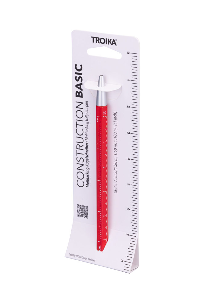Multitasking ballpoint pen with black D1 refill, centimetre/inch ruler, 1:20/1:50 scale, easy... more
