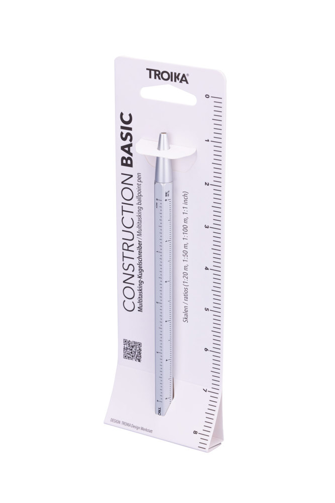 Multitasking ballpoint pen with black D1 refill, centimetre/inch ruler, 1:20/1:50 scale, easy... more