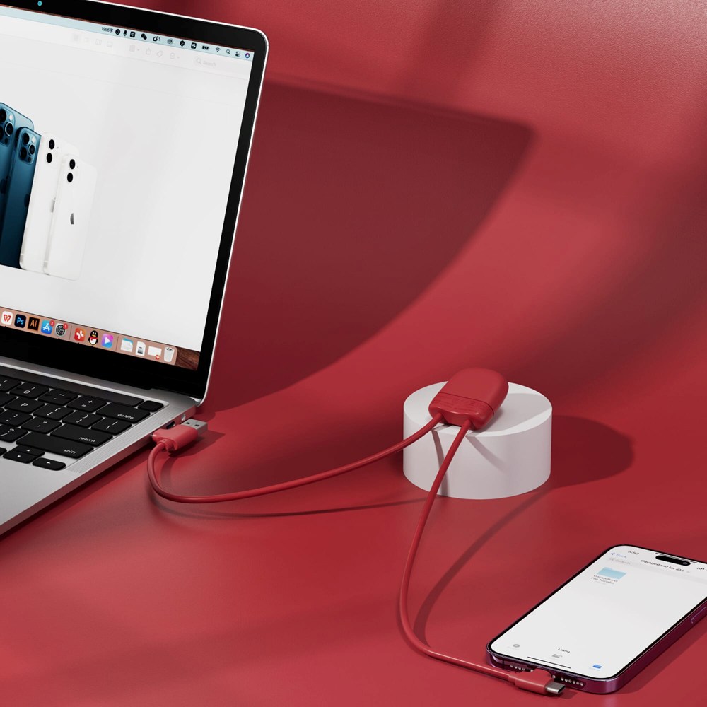 The 27Watt ICE-C charging cable is our latest multi-charging cable, with a dual USB & USB-C input and a dual USB-C & lightning output. The cable has a length of two times 50cm and support data transfer and car play. The total recycled content is 55% based on the item weight. The cable is packed in a sustainable FSC-certified paper envelope.