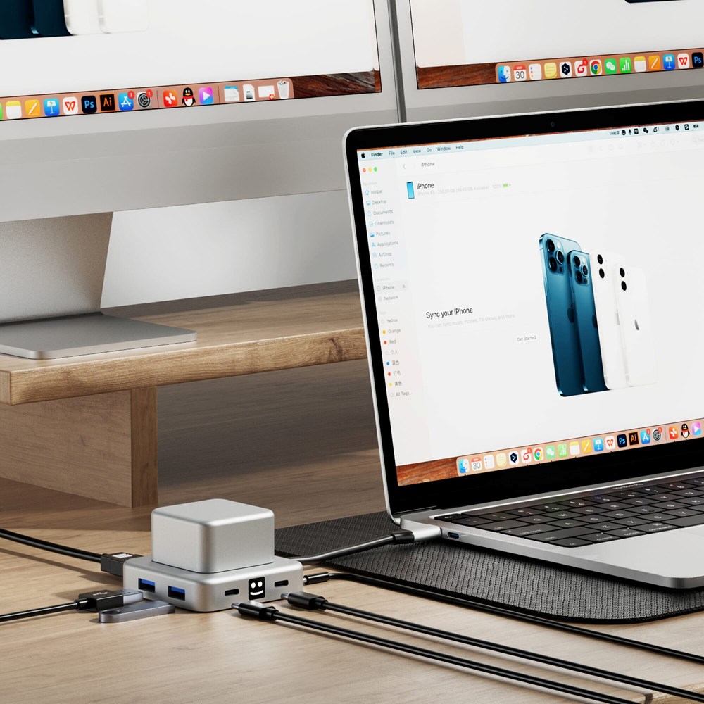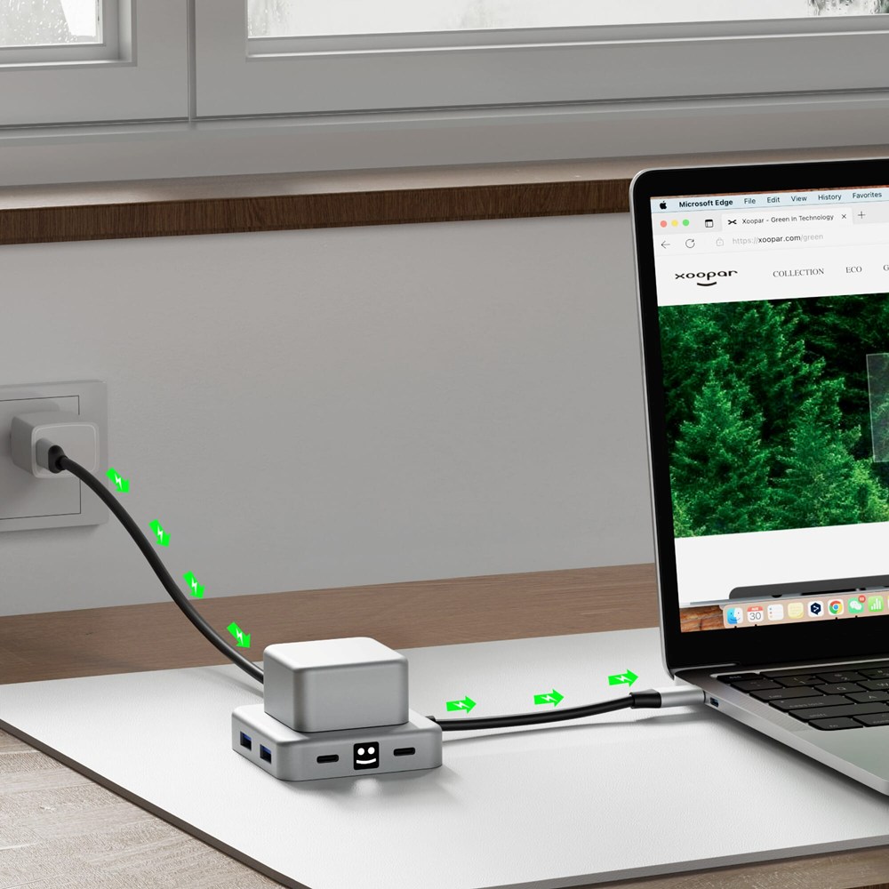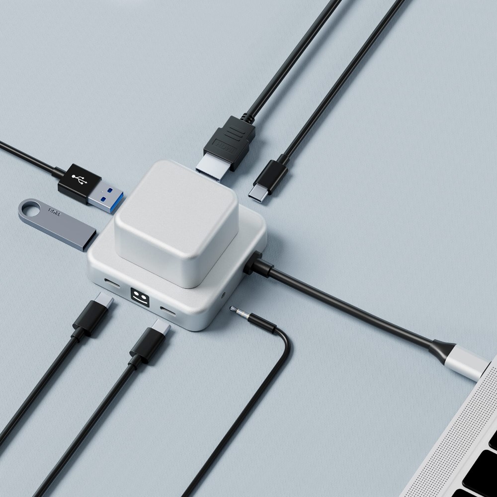No compromises here! Our hub is crafted from recycled aluminum, offers stress-relief rotation, supports up to 100W PD laptop charging, and features multiple ports—2 USB-A, 2 USB-C, HDMI, and an audio port. Elevate your connectivity sustainably!