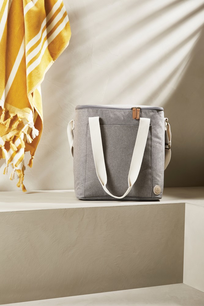 The weekend getaway will definetly get better with this trendy cooler bag, it is also practical and simple to clean. The cooler bag is in a melange fabric accompanied with PU details which makes it as fancy as a normal bag. On the front of the bag is a pocket for belongings. You can either carry it by its handles or over your shoulder.