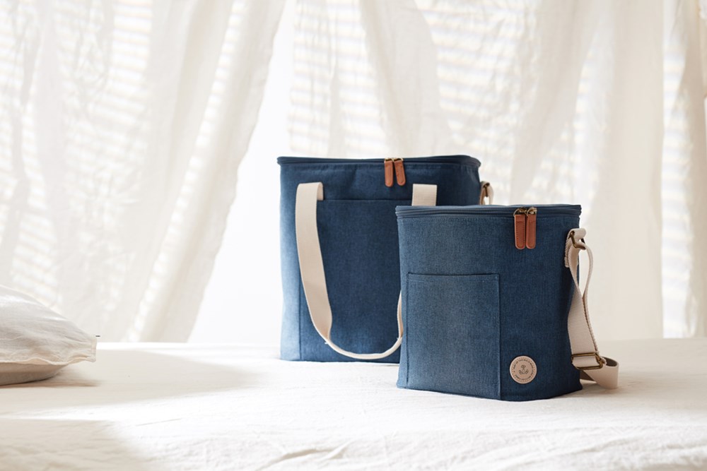 The weekend getaway will definetly get better with this trendy cooler bag, it is also practical and simple to clean. The cooler bag is in a melange fabric accompanied with PU details which makes it as fancy as a normal bag. On the front of the bag is a pocket for belongings. You can either carry it by its handles or over your shoulder.