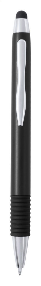 Plastic ballpoint and touch screen pen with rubber grip. Whit blue refill.