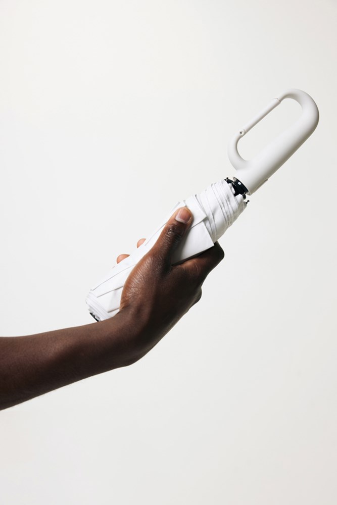 Smart and stylish, this umbrella is made to keep you dry on the go. Easy to carry, this umbrella has an auto-open comfortable grip, a windproof system that keeps the umbrella stable even in strong winds. The unique design with a carabiner handle allows you to hang the Yara umbrella on your backpack. Metal frame, fibreglass ribs with ABS handle. With AWARE™ tracer that validates the genuine use of recycled materials. 2% of proceeds of each Aware™ product sold will be donated to Water.org. Registered design.