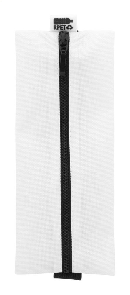 Custom made, zipped pen case in 600D RPET polyester with rubber band for attaching it to a notebook cover. With all over sublimation printed graphics and distinctive RPET label. MOQ: 50 pcs.