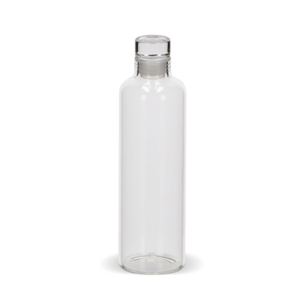 Use this crystal clear borosilicate glass bottle for drinking, mixing, or serving your favorite drinks. The sleek glass bottles feature a flexible stop to prevent spills and preserve your drinks. The absence of visible joints or seams enhances its sleek, elegant design, making it a refined choice for any occasion.