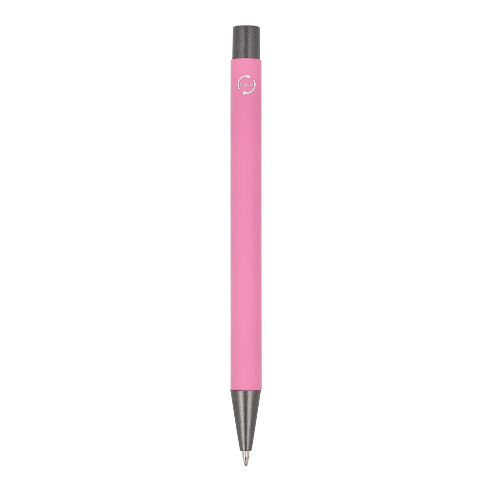 The recycled aluminum edition of our popular New York pen, with a soft touch finish; an elegant, aluminum ball pen with a sleek vibe. The pen comes with blue writing ink.