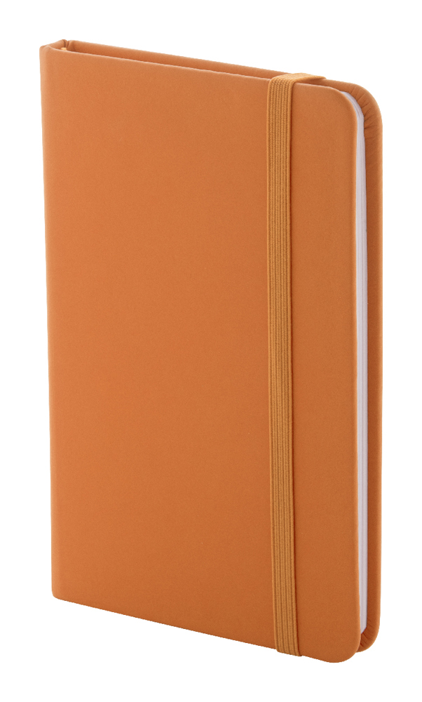 Recycled PU leather covered notebook with 100 lined sheets in recycled paper. With matching colour bookmark and rubber band. A6 size.