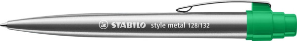 COOL STYLE IN METALLIC LOOK. Stylish silver metal ballpoint pen with comfortable, extra wide push-button and a high-quality, jumbo reservoir. Classy metal shaft with upper component in 8 popular colors.
