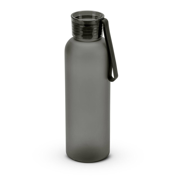 Sports bottle in recycled PET (100% rPET), with a frost finish. Leak-proof PS lid with silicone strap for easy transport. Capacity up to 600 mL. ø66 x 215 mm