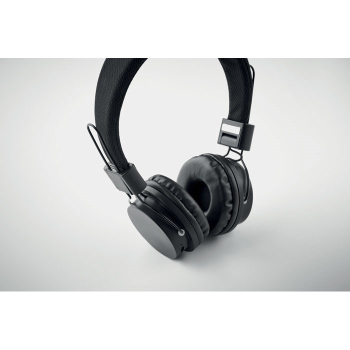 5.4 wireless foldable headphones in ABS. Hands free function and built- in microphone. Playing time approx. 9 hours. Includes type-C charging cable. Rechargeable 400 mAh Li-ION battery. Operating range: 10 m.