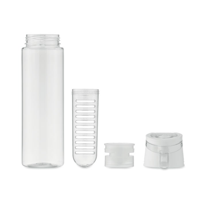 Water bottle in RPET with removable fruit infuser with carrying handle and leak proof lid. Capacity 500 ml.