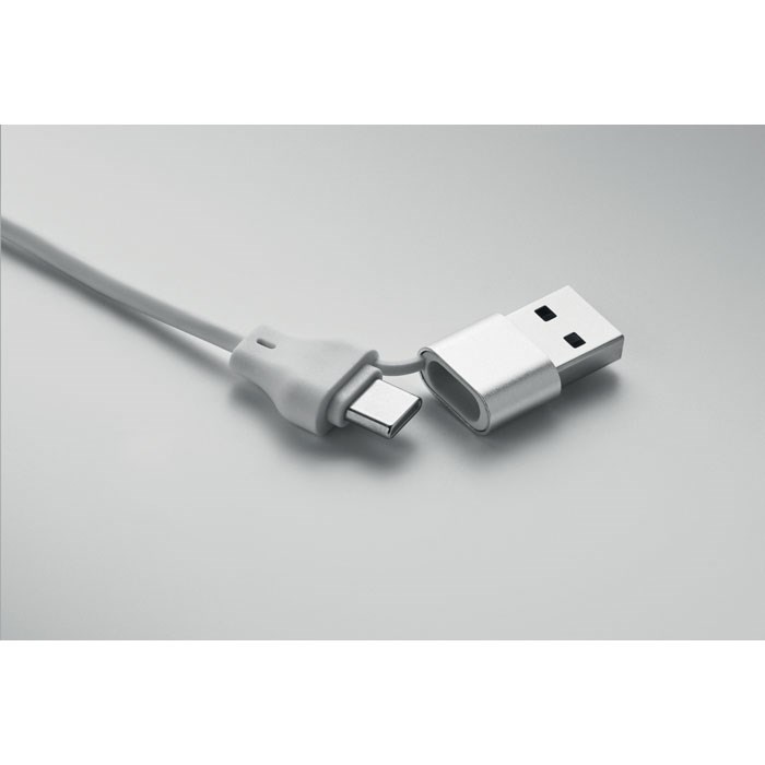 Key ring 4 in 1 data transfer and charging cable 60W with bamboo detail. Input: 2-in-1 Type-C &... more