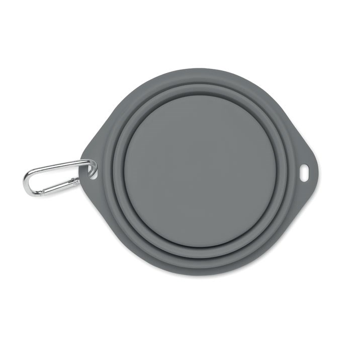 Collapsible portable silicone single drinking or food pet bowl with carabiner. Capacity: 350ml.